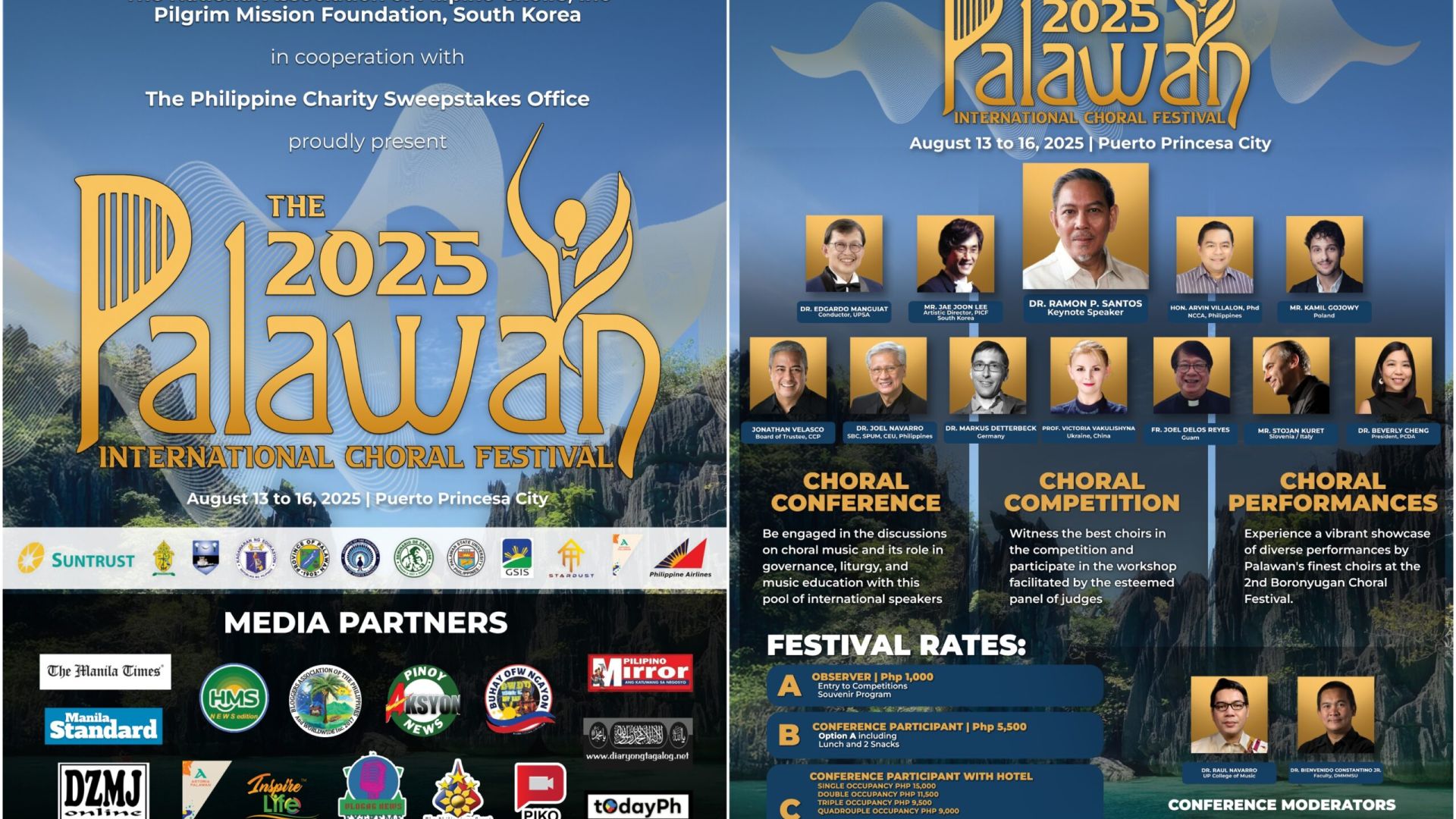 The 2025 Palawan International Choral Festival, a landmark event in the Philippine choral calendar, will be held from August 13 to 16 in Puerto Princesa City. This prestigious gathering will feature a vibrant showcase of talent, bringing together top regional choirs and internationally renowned choral experts in a celebration of music, culture, and community.
