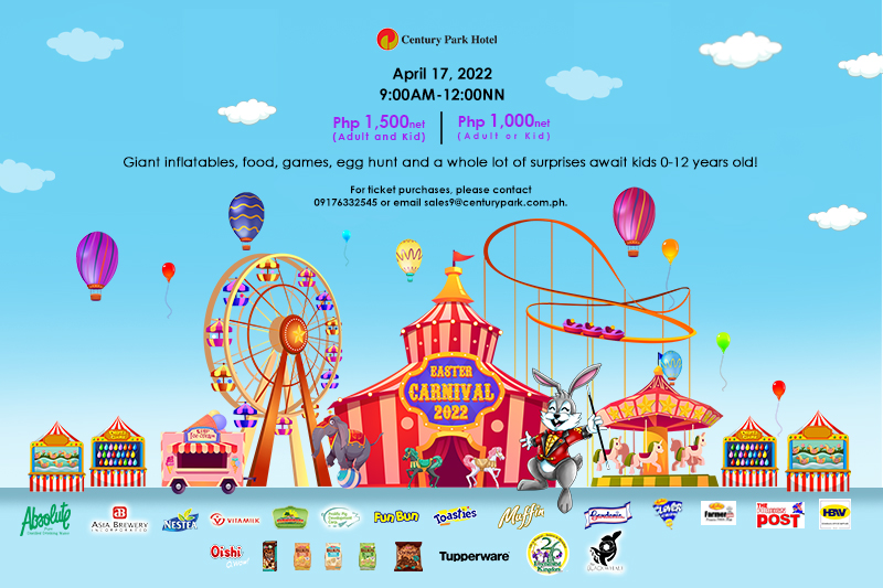 This year, showstopping surprises are in store at Century Park Hotel’s Easter Carnival 2022! Kids aged 12 and below are welcome once again and can slide & jump for joy with the giant inflatables, be creative with their face painting, get wacky in the photo booth, win exciting prizes in the raffle & games, be enthralled in the magic show, and search for the popular eggs in the most-anticipated egg hunting activity.
