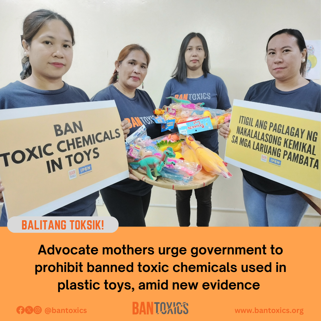 The group said it will engage with the Department of Environment and Natural Resources and the Food and Drugs Administration, sharing IPEN’s study and urging them to prioritize plastic toys potentially containing toxic chlorinated paraffins for prompt consideration.