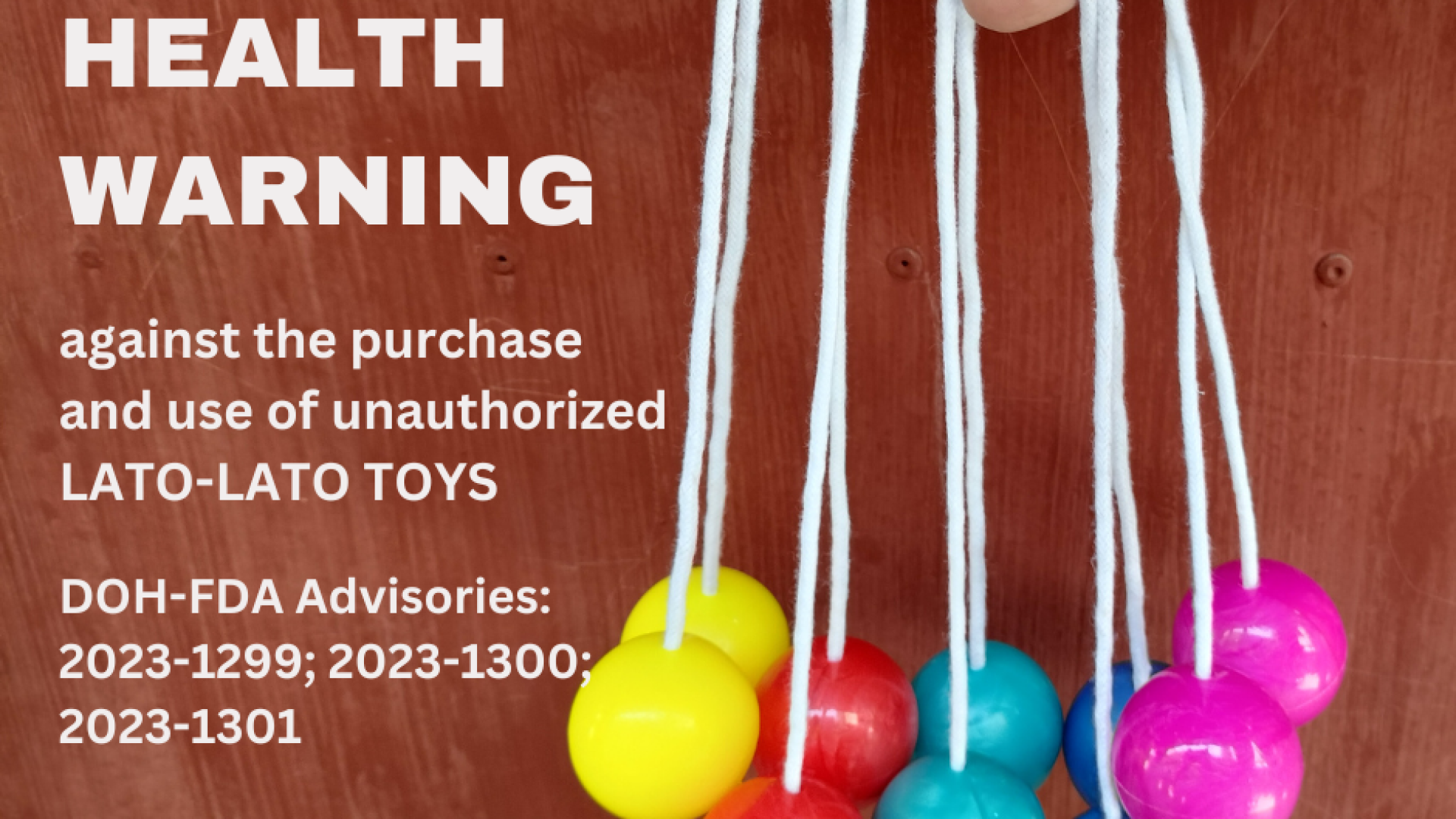 “We strongly urge regulatory agencies, including local government officials, to strictly implement the advisories and conduct monitoring and confiscation of unnotified and unregistered lato-lato Toys to ensure that the products are not sold or made available in the market or areas of their jurisdiction.”
