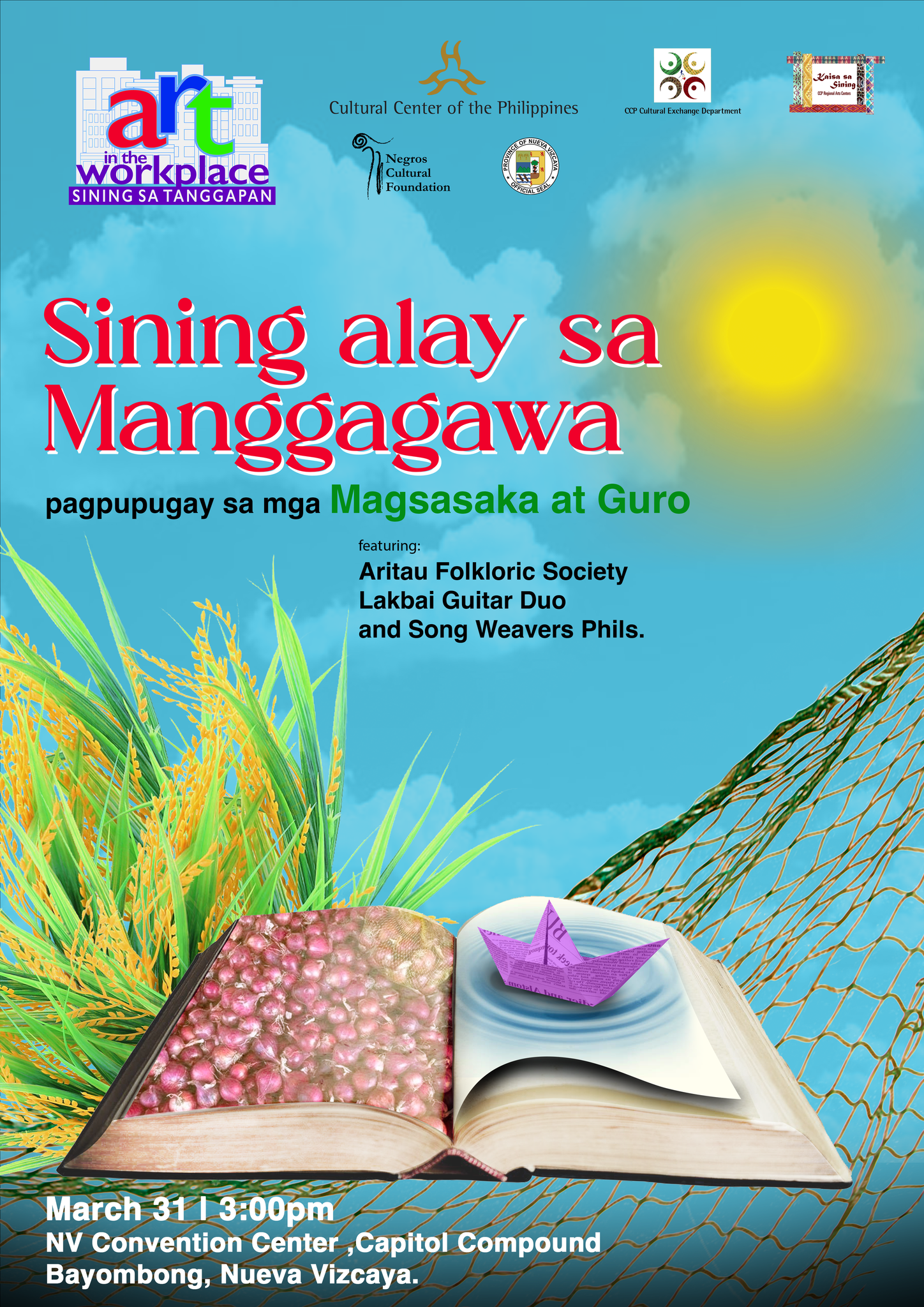 What better way to honor farmers and teachers but through a special arts program that recognizes their valuable contribution to community and nation building.  This was what the Cultural Center of the Philippines (CCP) Cultural Exchange Department (CED) and the Province of Nueva Vizcaya did last March 31, 2023 at the Nueva Vizcaya Convention Center when they mounted Sining Alay sa Manggagawa (Art for Workers/Laborers) under the program Art in the Workplace. (AIWP).