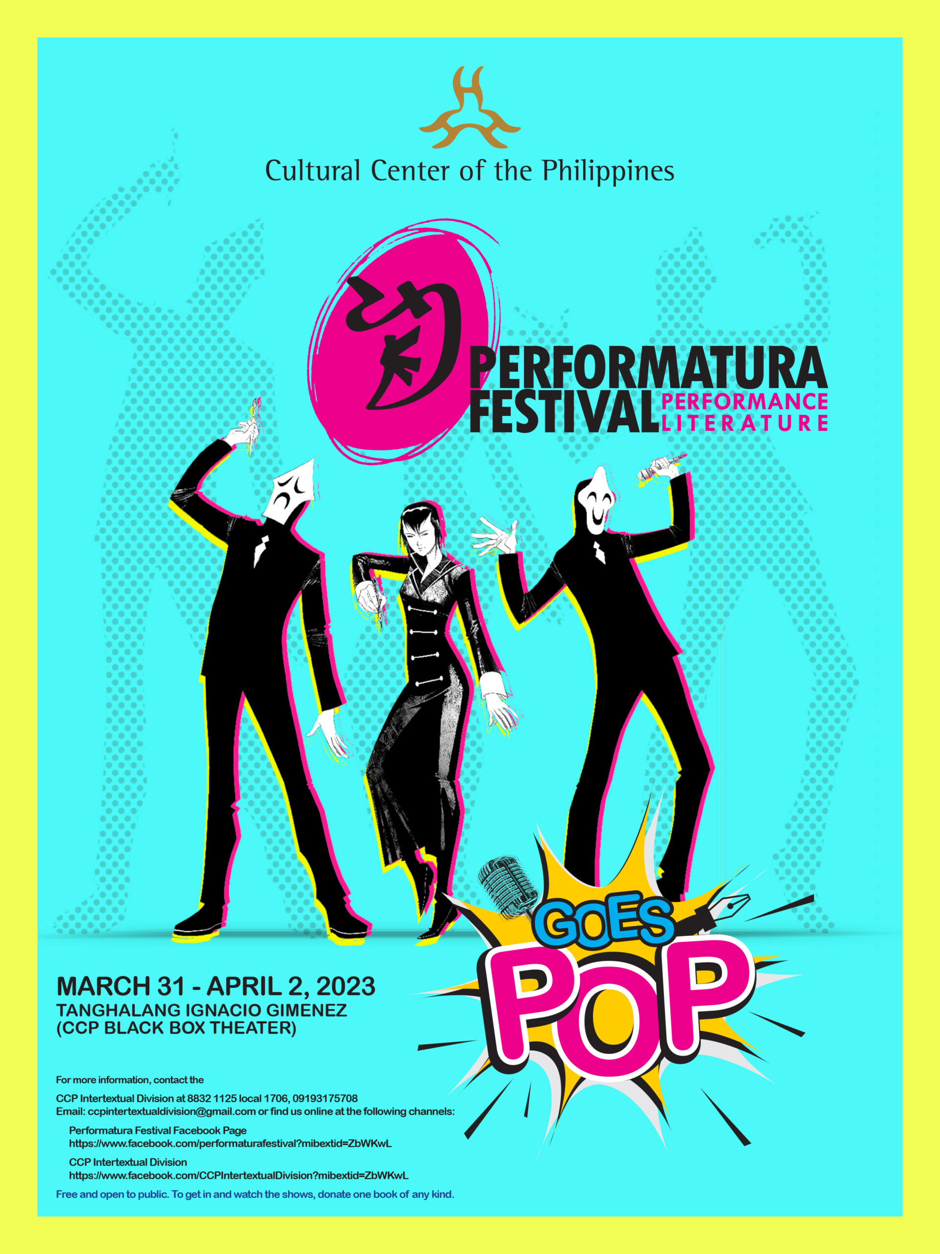 PERFORMATURA, the festival of written words and performances, returns on March 31 to April 2, 2023, with live and on-site activities happening from 10:30am onwards, at the Tanghalang Ignacio B. Gimenez (CCP Black Box Theater).