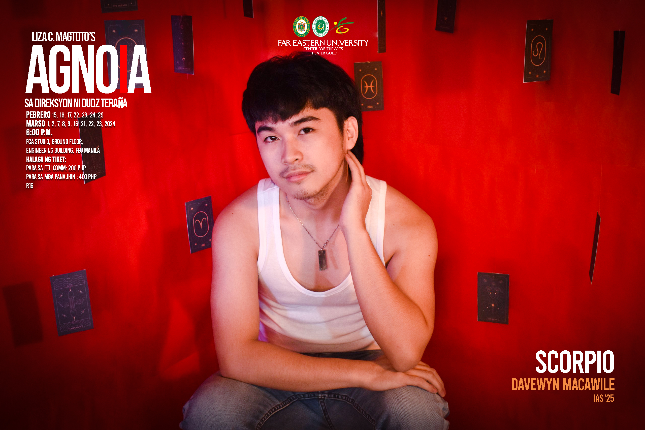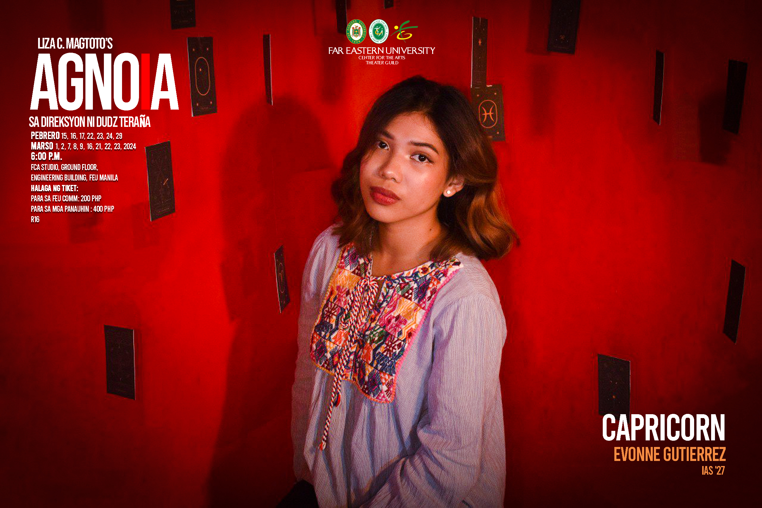 The Far Eastern University Theater Guild’s (FTG) 90th season opened by exploring the intricacies of love in Tamdula VI: Love-Oratory and now restages Liza Magtoto’s “Agnoia” inspired by Eli Rueda Guieb III’s short story “Horoscope”. First performed in FEU in 2013, “Agnoia” delves into the fateful webbing of relationships and destiny and will be restaged in a more intimate setting. Witness how the themes of love and circumstance take on the characters of the Zodiac signs as the FTG marks this significant milestone in its illustrious history.
