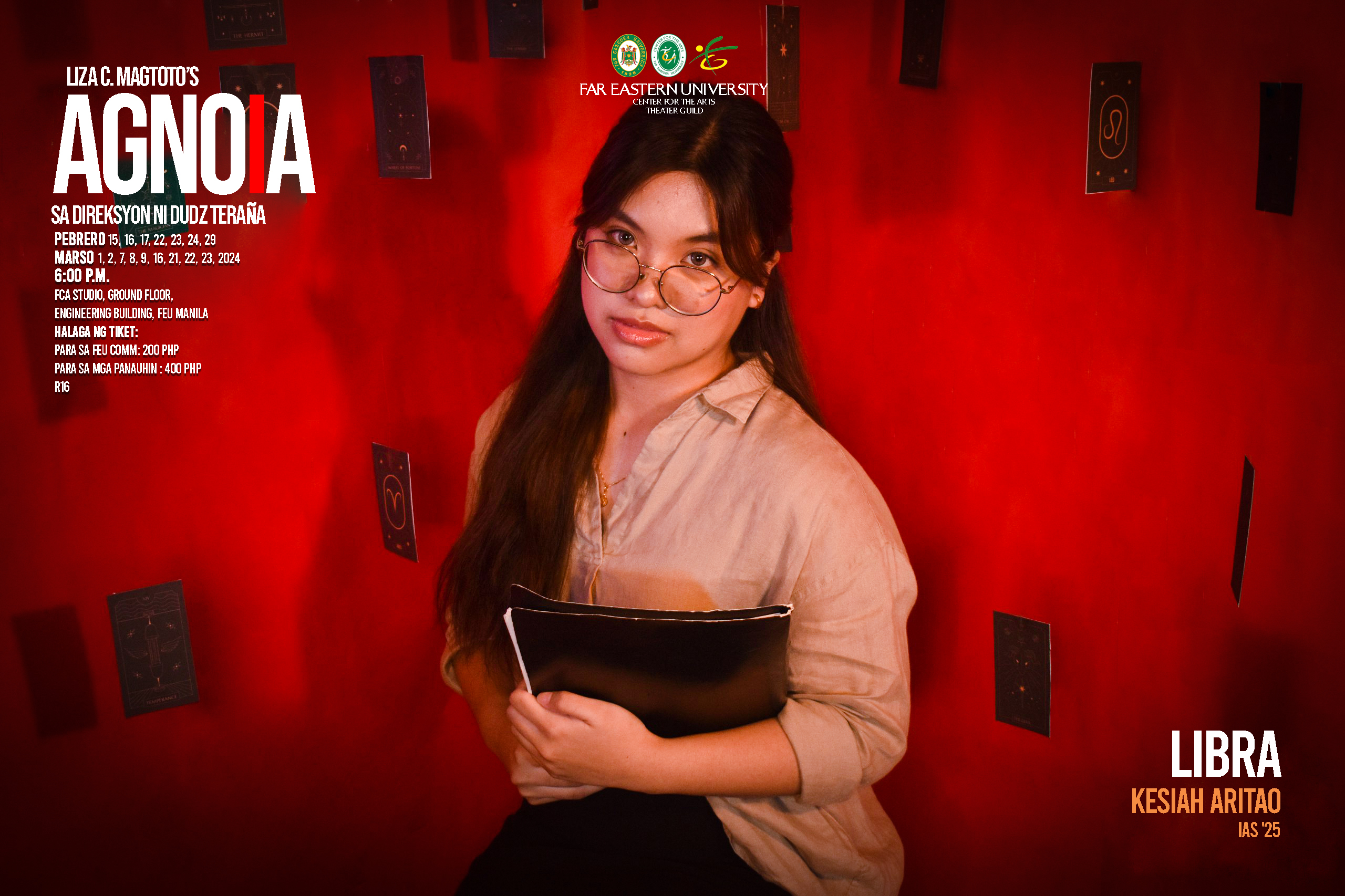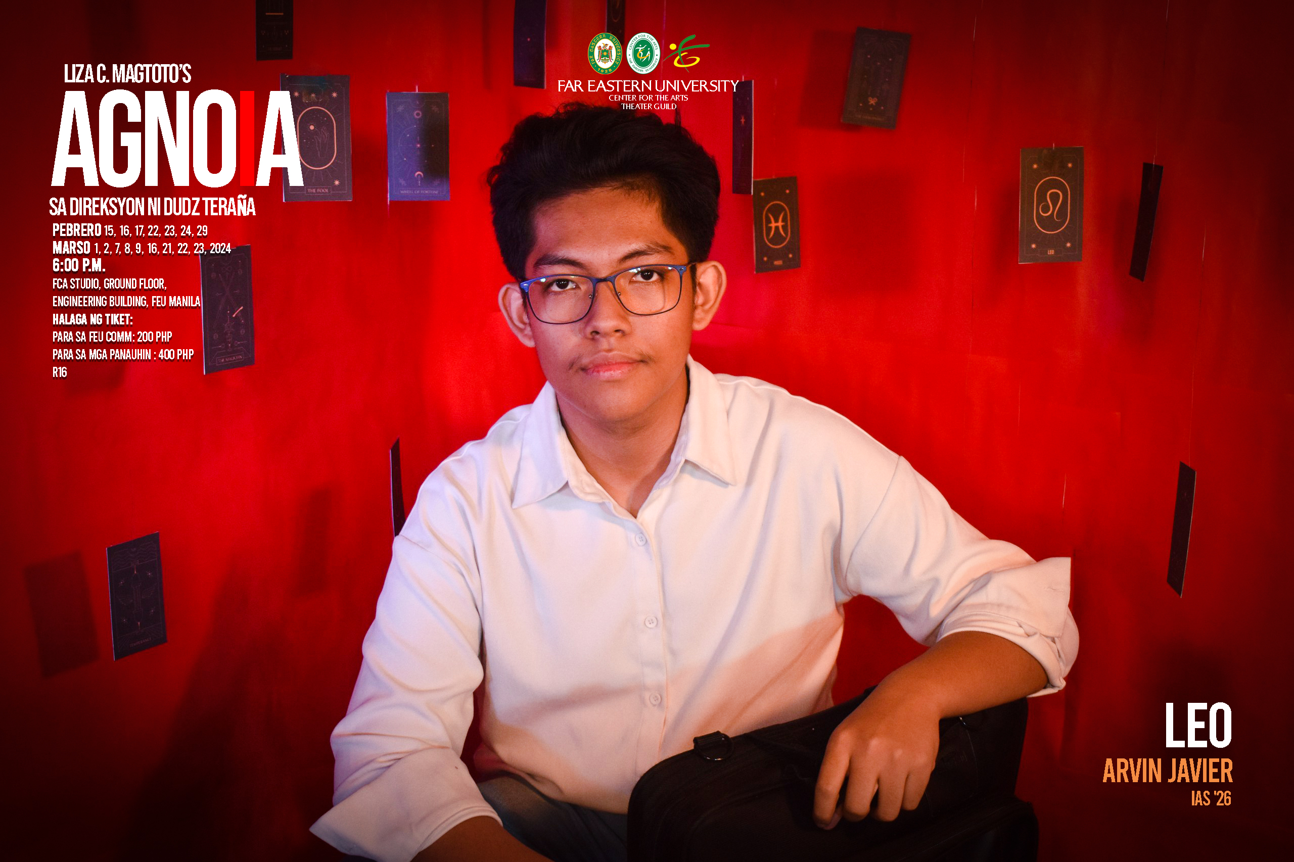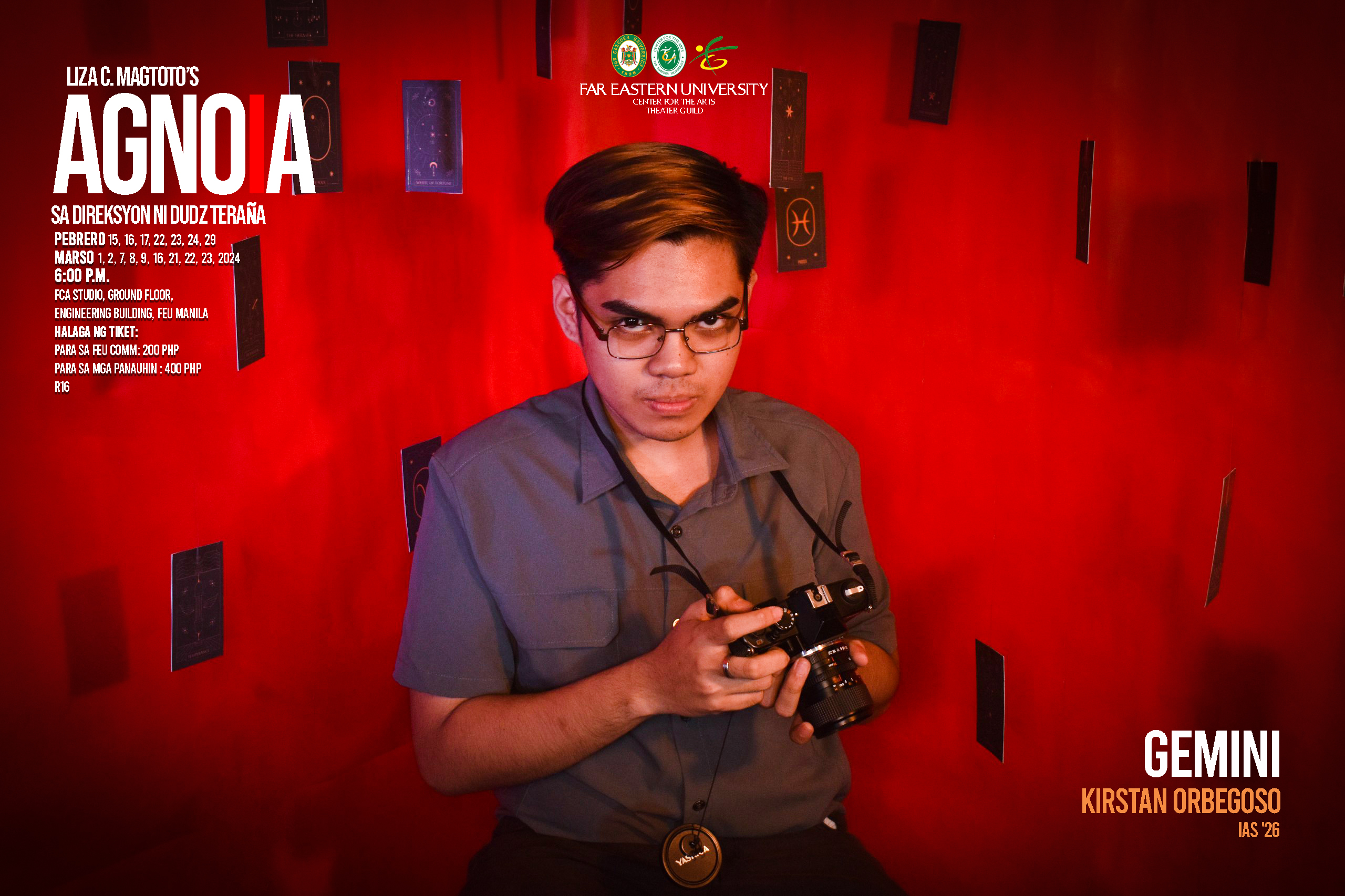 None of this would be possible without the heads of Agnoia’s production team joined by their staff in their respective committees: Marj Uson (IAS ‘27) for Stage Management, Kirstian Samson (IAS ‘26) for Technicals, Maria Mayano for Production Design, Millicent Roxas (IAS ‘25) for Public Relations, and Aaron Bayani for Marketing. Lastly, the production is made possible by Far Eastern University and the FEU Center for the Arts.