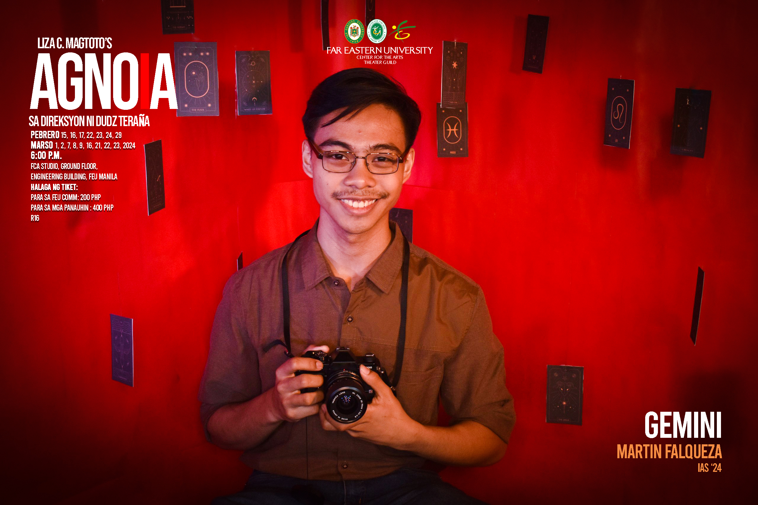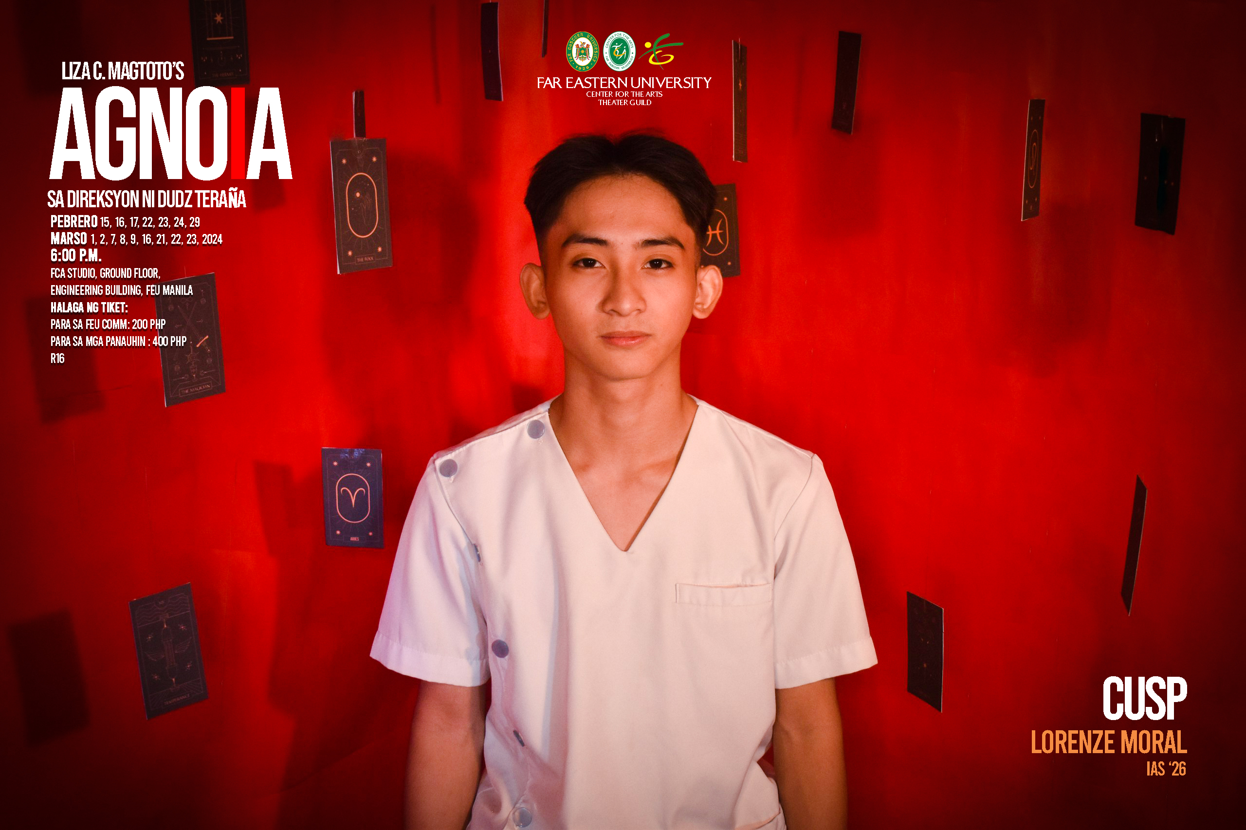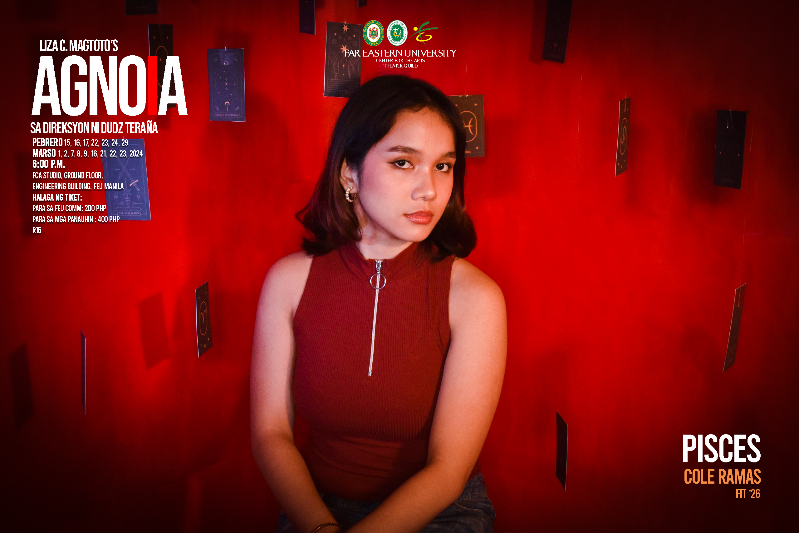 None of this would be possible without the heads of Agnoia’s production team joined by their staff in their respective committees: Marj Uson (IAS ‘27) for Stage Management, Kirstian Samson (IAS ‘26) for Technicals, Maria Mayano for Production Design, Millicent Roxas (IAS ‘25) for Public Relations, and Aaron Bayani for Marketing. Lastly, the production is made possible by Far Eastern University and the FEU Center for the Arts.