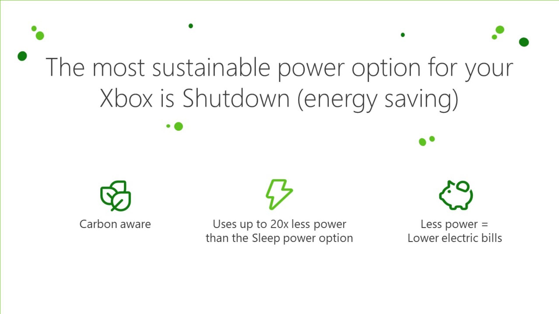Xbox is continuing to explore options for all players to reduce their environmental footprint. Xbox One consoles will begin to see new power mode options, including shutdown (energy saving) as early as today. Xbox One consoles will be flighting multiple options in order to test and inform players. This effort is to provide Xbox One console players an opportunity to provide feedback on their experience.