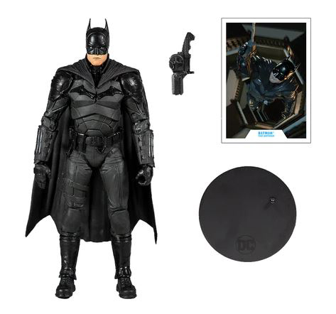 The Batman’s back! Incredibly detailed 7’’ scale Mc Farlane DC Comics Multiverse Batman figure is designed with ultra-articulation as his posture and look in the upcoming The Batman movie. Available in select Toy Kingdom stores.