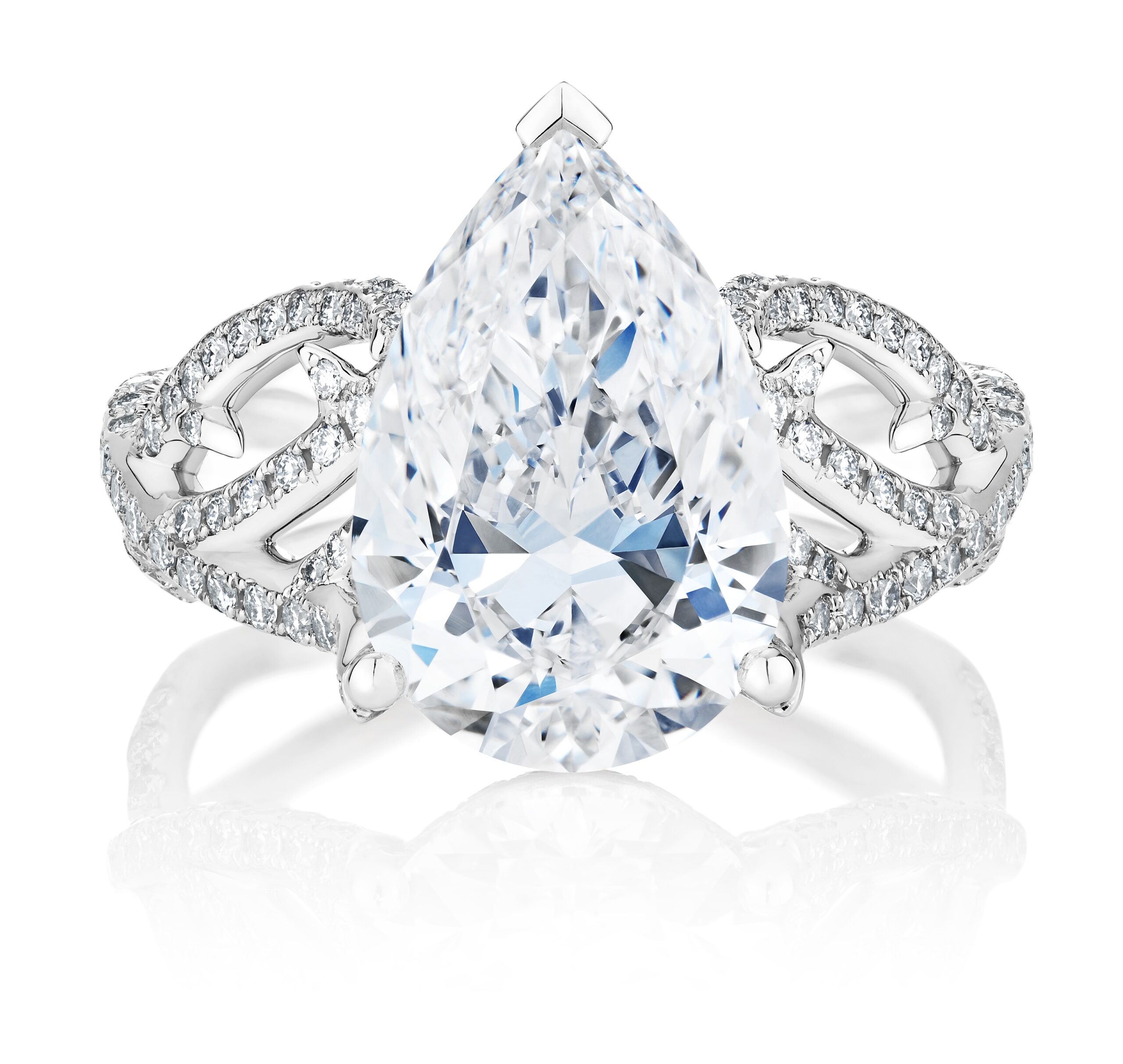 Volute High Jewellery ring in platinum with 1 pear-shaped diamond and pavé diamonds (6.80cts).