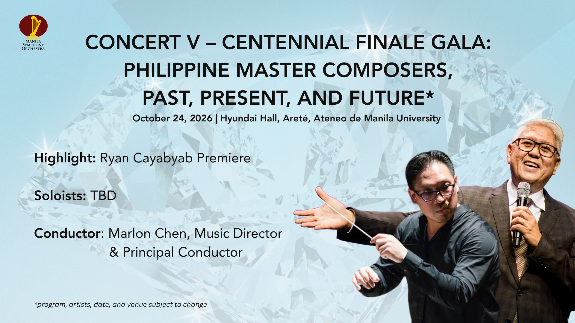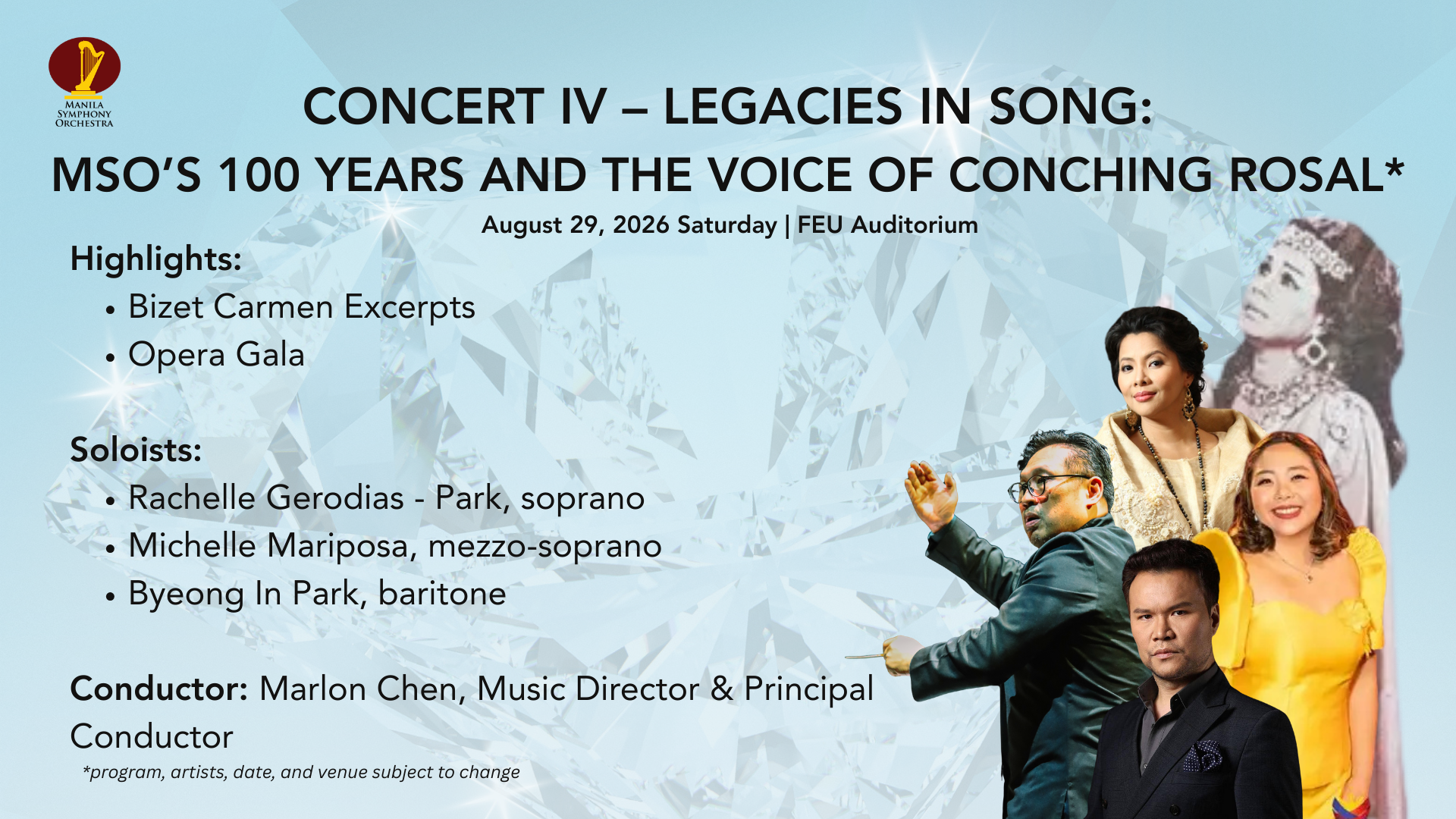 Concert IV – Legacies in Song: MSO’s 100 Years and the Voice of Conching Rosal