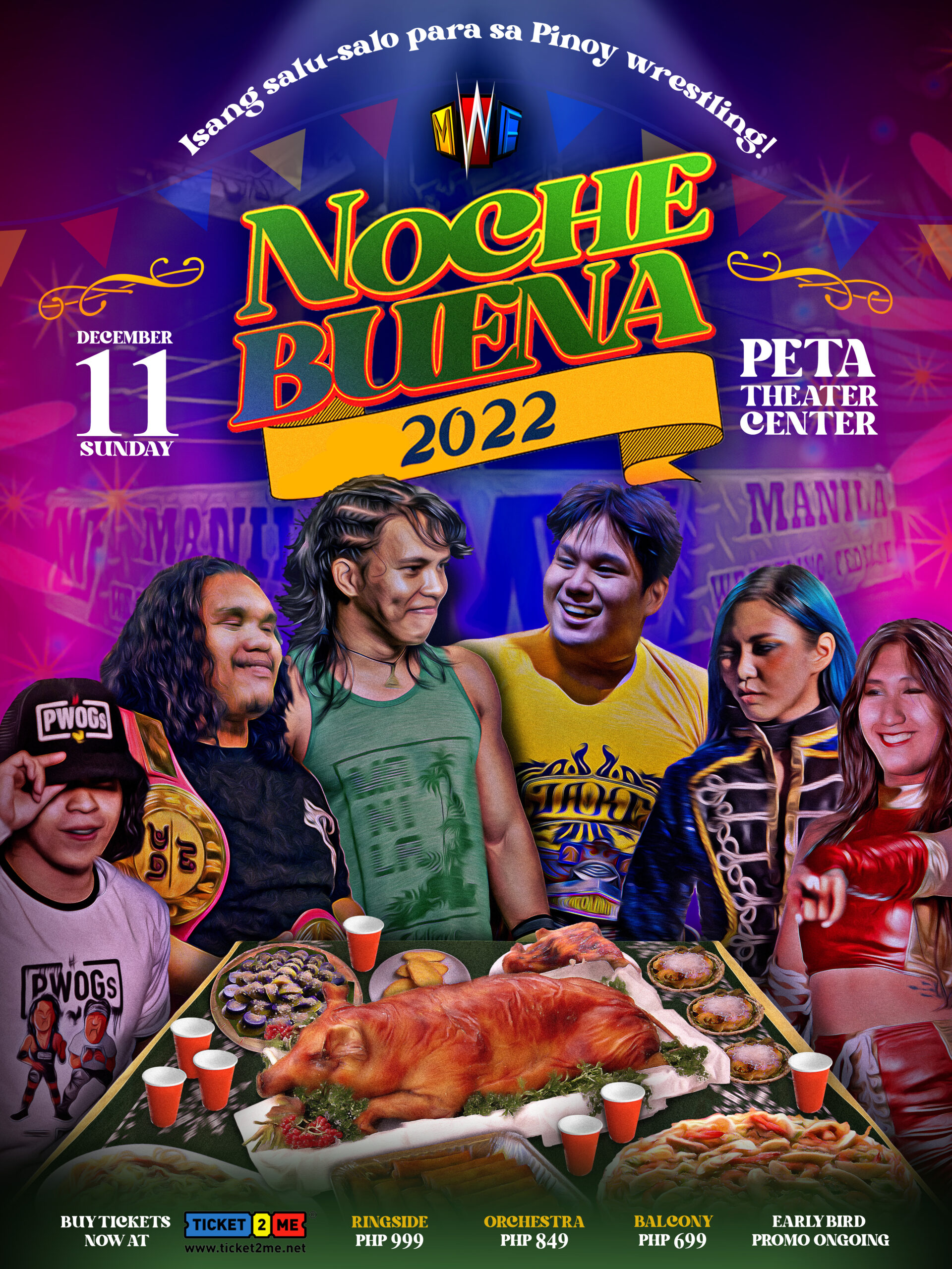 Don’t miss this year’s hard-hitting, non-stop-action Christmas combat event! Get your tickets to MWF: Noche Buena 2022 now at Ticket2Me, or MWF’s official homepage www.manilawrestling.com.