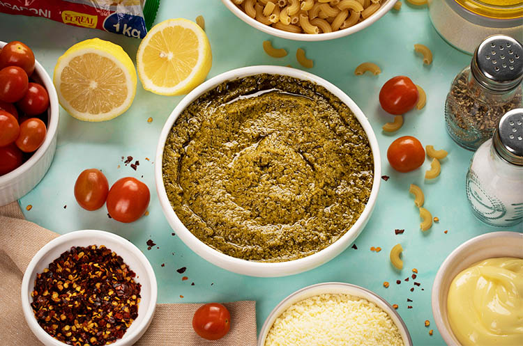 For a nutritious and filling macaroni dish, you can try making Pesto and Parmesan Macaroni. Made from basil, pesto is said to be a good source of vitamins, calcium, and iron, which makes it a great pasta sauce. Give your dish more flavor with some lemon juice and sour cream in the sauce, and top off your El Real Elbow Macaroni with chili flakes and parmesan cheese.