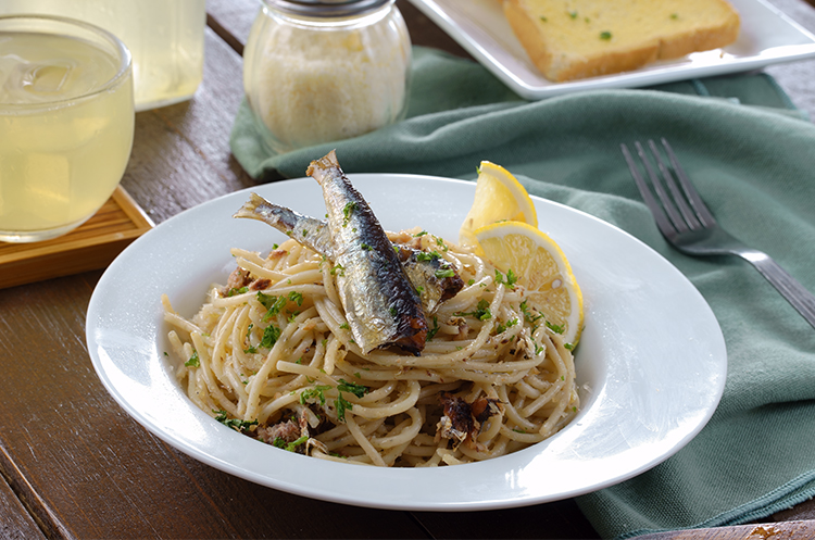 Fish like sardines are an excellent source of vitamins B-12 and D, and other nutrients. Sardines can make a great pasta dish when mixed with oil, garlic, and a little lemon juice on top of El Real Healthy Pasta.