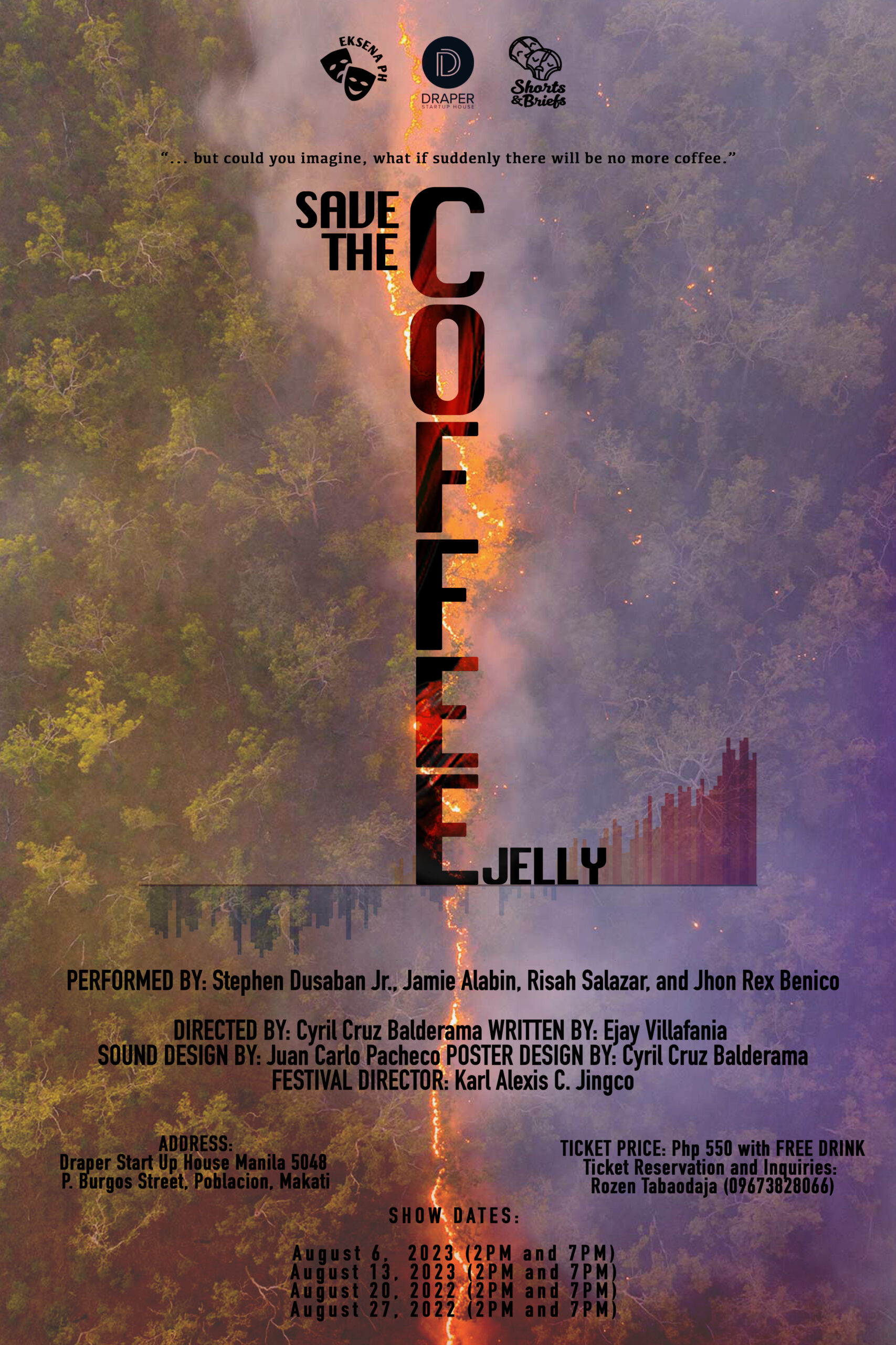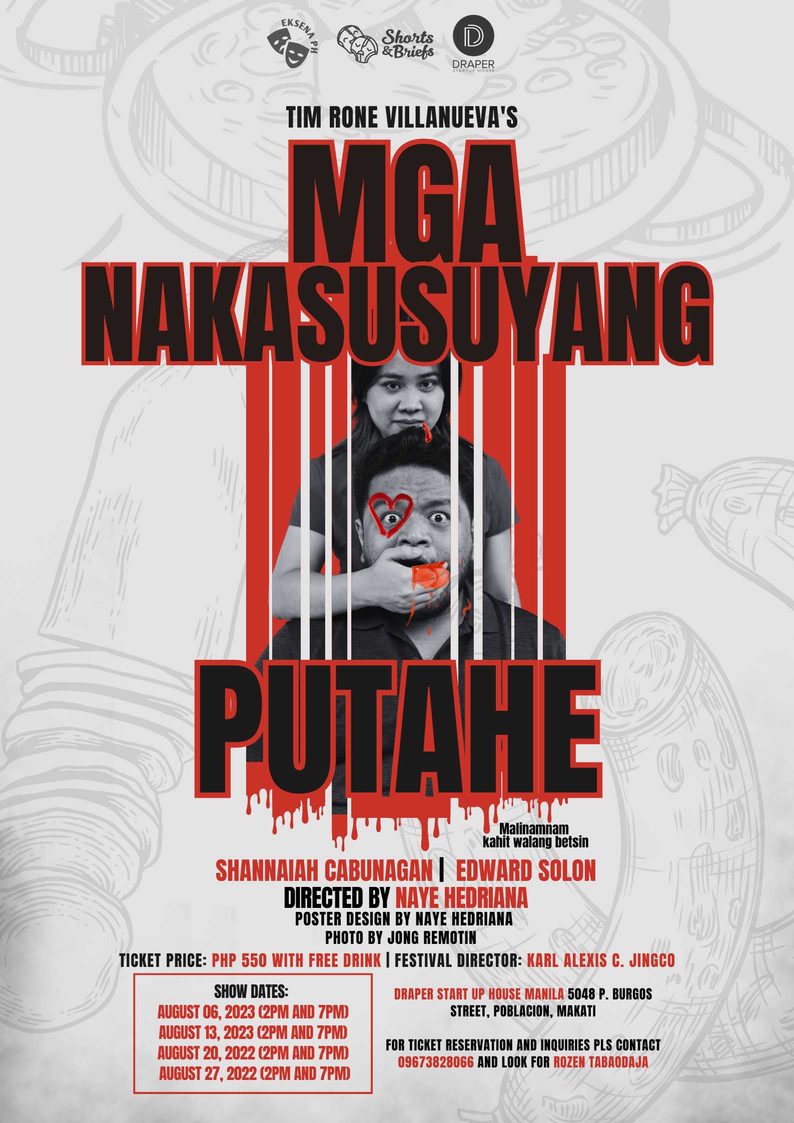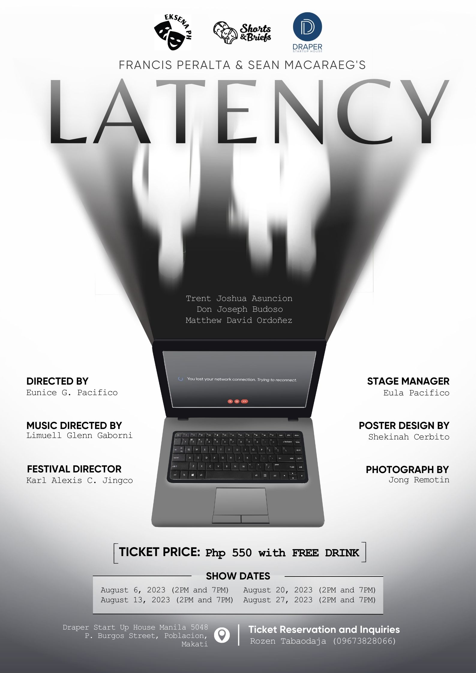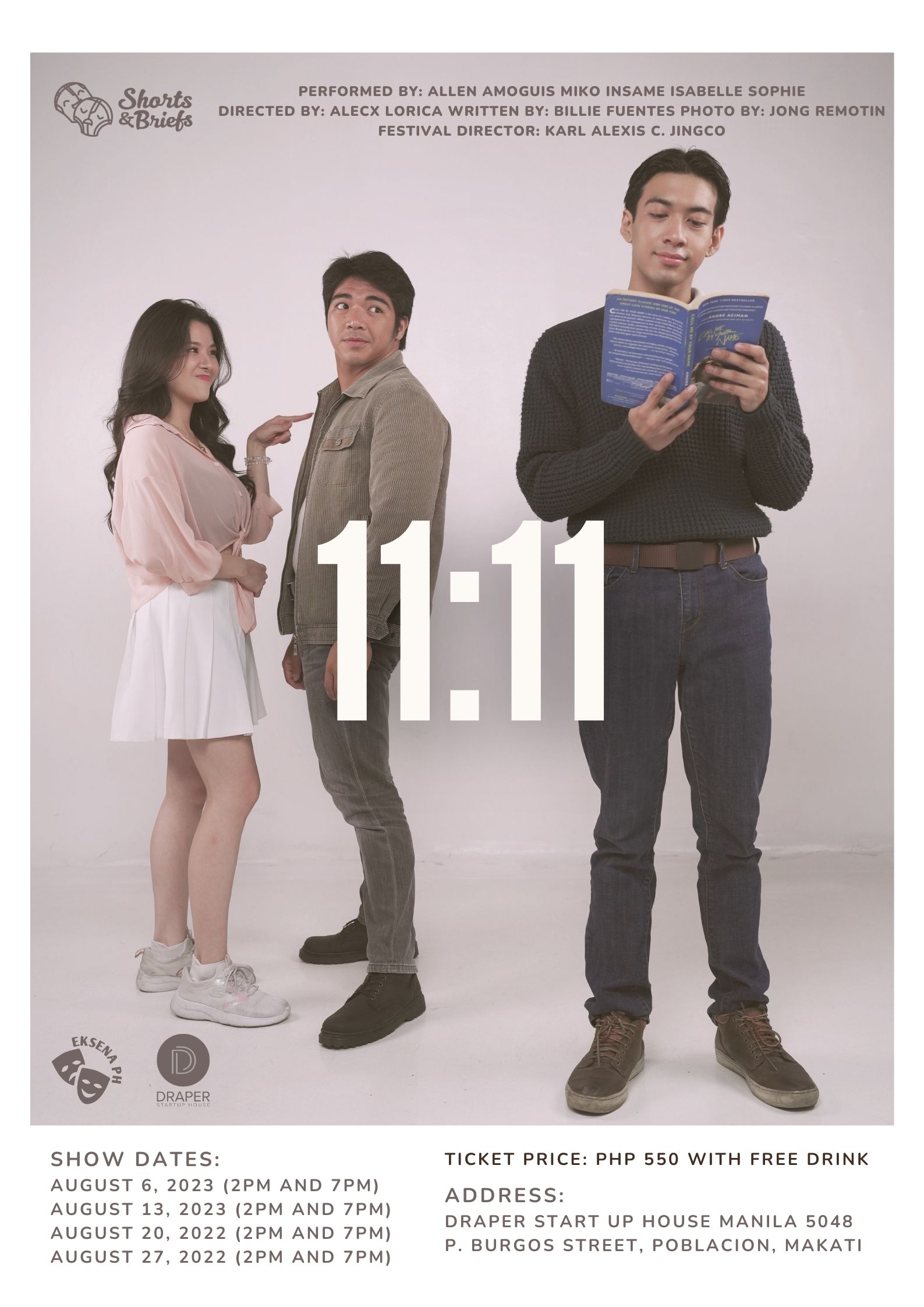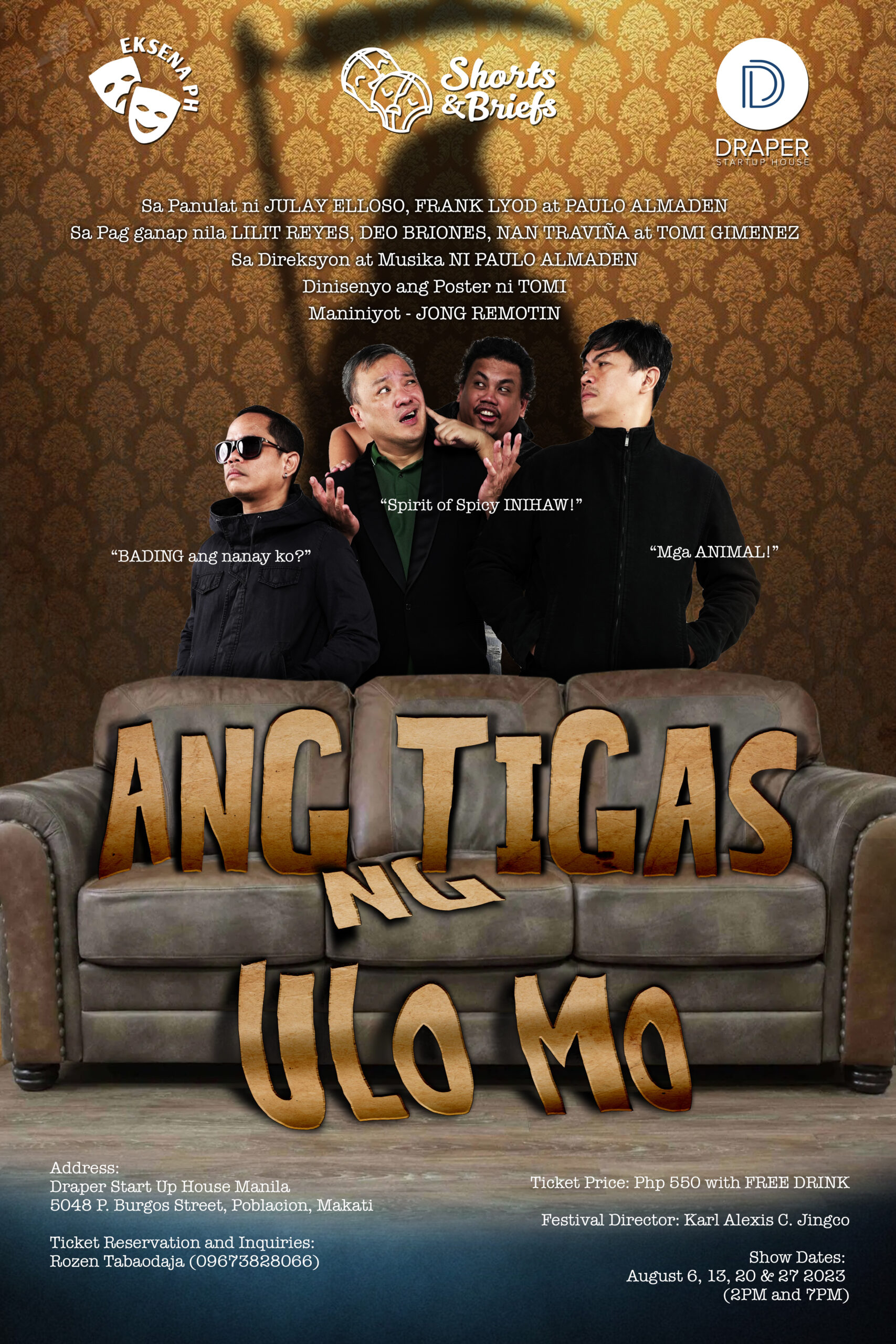 It will be staged at DRAPER STARTUP HOUSE in Poblacion Makati, All Sundays of August starting August 06-27. Showtime is at 2pm and 7pm every Sunday. DRAPER is a 80-seater venue, is located at 5048 P. Burgos Street, Poblacion, Makati, Philippines.