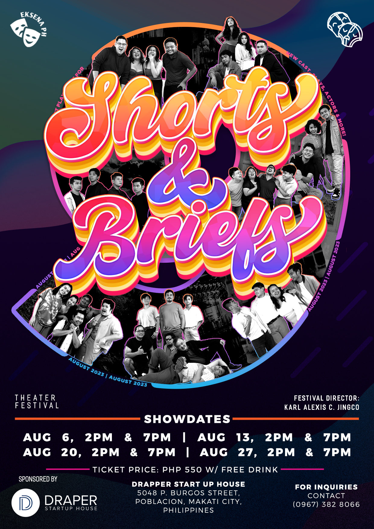 Shorts & Briefs 9 by EKSENA PH, is an independently produced “THEATRE FESTIVAL” of short and brief Plays (10-12min plays) that features ONLY 1st time theatre makers and performers. It’s been running for 9 years. This year they are back to the LIVE theatre scene celebrating 9 years with 8 live shows on all Sundays of AUGUST. Debuting this season are 8 set of Plays featuring New faces in the theatre Scene. This year SNB 9 will also feature original stories from New and Upcoming Playwrights.