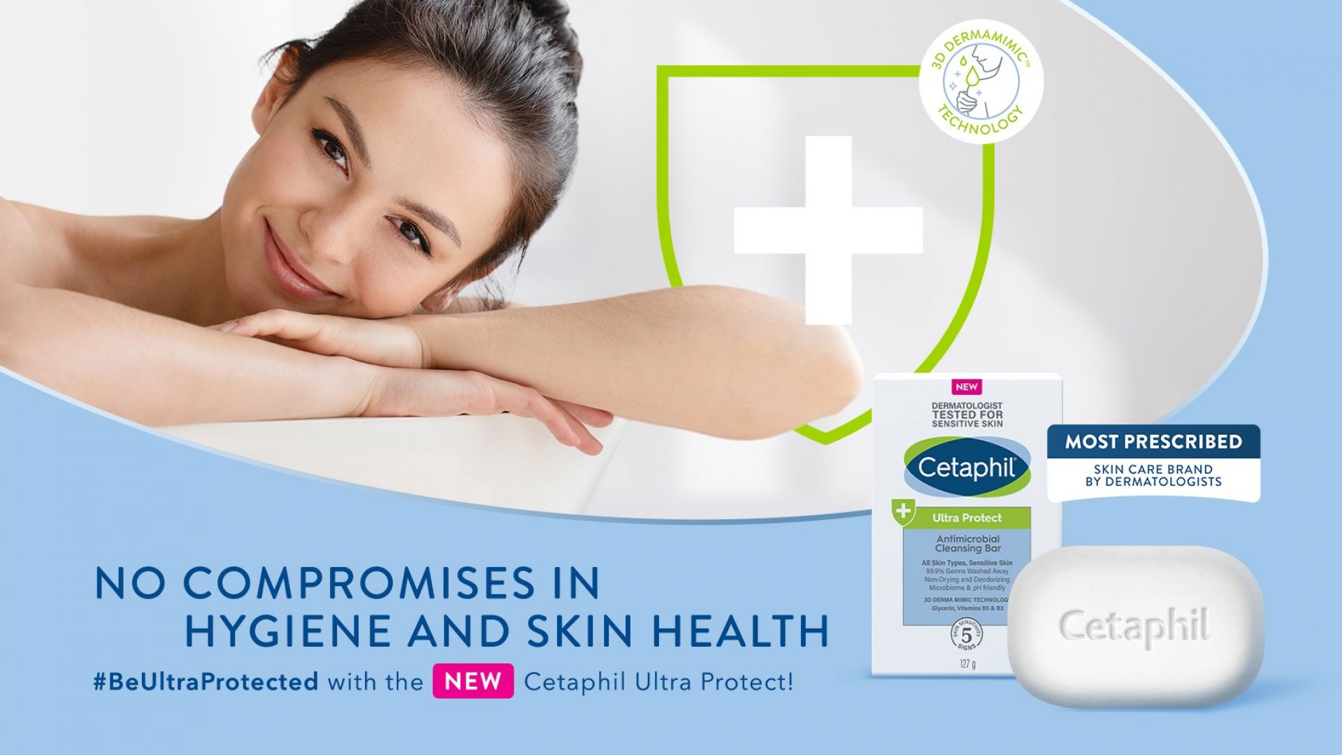 Using harsh bar soap and frequent washing leads to dry skin, which can further lead to skin irritation, roughness, and dryness. However, there is now a better solution when it comes to hygiene. Introducing the new Cetaphil Ultra Protect, an antimicrobial cleansing bar that is the right choice to care for your skin. There are no compromises: the product combines the benefits of 99.9% germ protection and moisturization. It is designed for all skin types, especially sensitive skin.