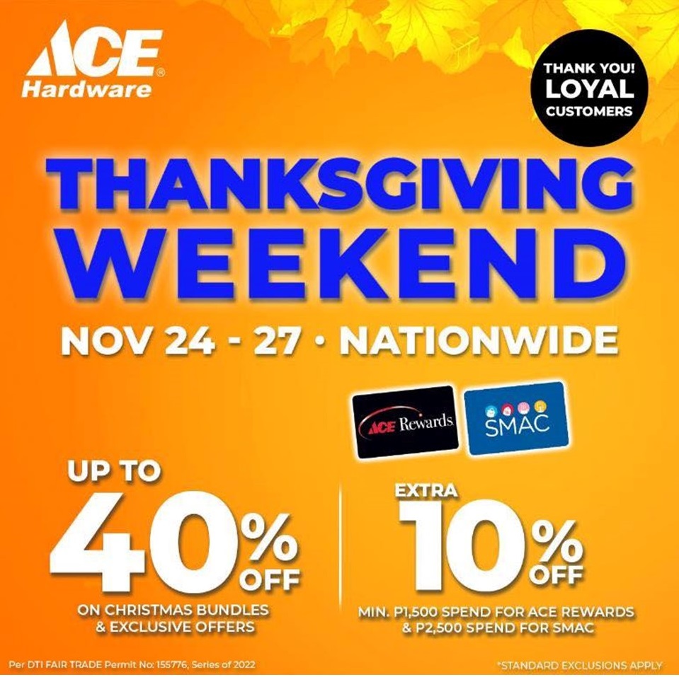Get the same 10% off at Surplus with minimum of P1,000 purchases, and at Ace Hardware with P1,500 minimum required purchases.