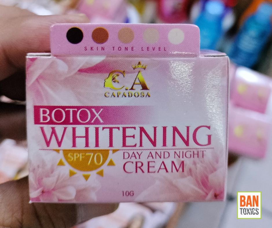 Toxic watchdog group BAN Toxics lauds the Food and Drug Administration (FDA) Philippines for issuing the FDA Advisory No. 2023-1951 – a Public Health Warning against the purchase and use of unauthorized C.A Capadosa Botox Whitening Day and Night Cream SPF70 Skin Lightening Products (SLPs).