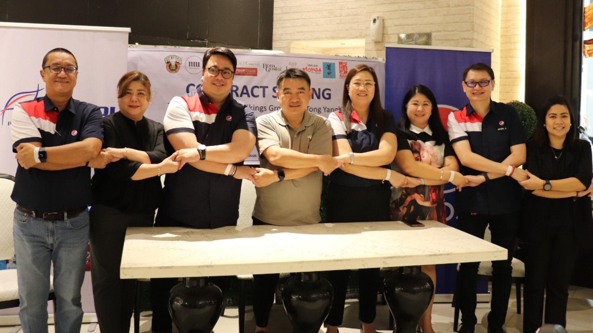 Vikings, Tong Yang strengthen partnership with PCPPI. The multi-awarded restaurants recently renewed ties with PCPPI in a ceremonial contract signing in Makati City. Present during the event were (from left to right) PCPPI National Key Accounts – Food Service Director Alex Catindig, Vikings Operation Director Mia Bernardo, PCPPI Area Commercial Head Red Israel, Vikings Group President Jackson Go, PCPPI Region Commercial Head Mayette Guro, Vikings Group Sr. Supply Chain Manager Luzvie Sityar-Villanueva, PCPPI Customer Development Manager Joel Javier, and Vikings Operation Director Hazel Rodriguez.